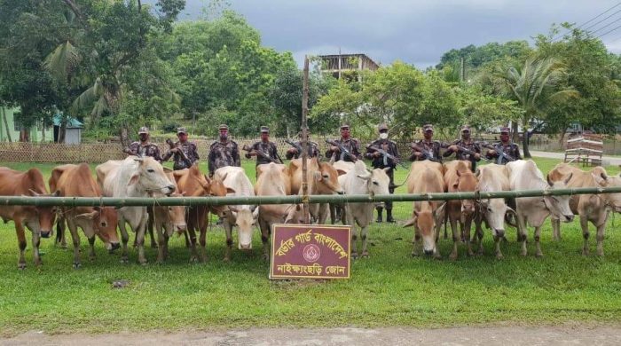মোহাম্মদ ইউনুছ নাইক্ষ্যংছড়ি থেকে ঃ নাইক্ষ্যংছড়ি ১১ বিজিবির অভিযানে আবারও ১৪ টি গরু জব্দ করেছে বিজিবি। রবিবার (৩ জুলাই) ভোরে মিয়ানমার থেকে সরকারি রাজস্ব ফাঁকি দিয়ে নাইক্ষ্যংছড়ির ফুলতলী সীমান্তের লম্বা